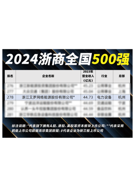 • 入选“全球新能源企业500强”“浙商全国500强”