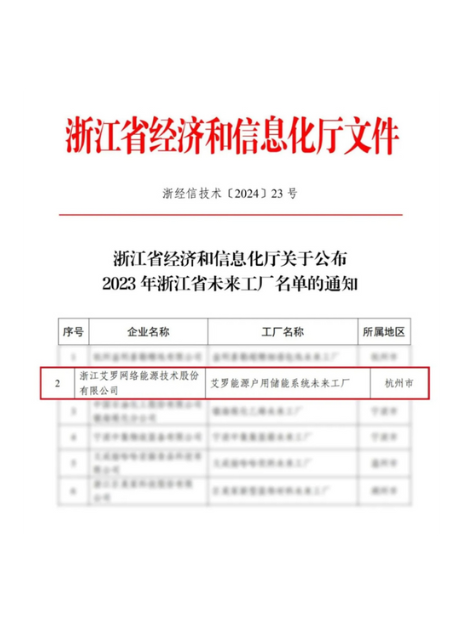 2024:“GA黄金甲能源户用储能系统”上榜浙江省未来工厂